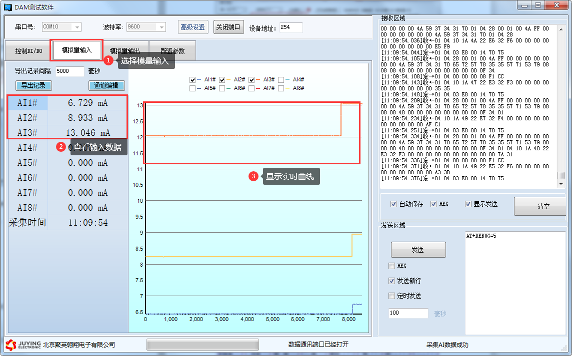 指令可通過“聚英翱翔DAM調試軟件”,勾選調試信息來獲取。