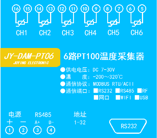 6路熱電偶溫度數(shù)據(jù)采集 ,工業(yè)級溫度采集模塊,高精度24位AD轉(zhuǎn)換分辨率0.01●測溫精度0.1℃●采集頻率10HZ●支持多路同時采集●設(shè)備兼容兩線制和三線制PT100傳感器
