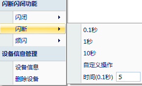 注:閃斷閃開(kāi)模式不能寫(xiě)入設(shè)備芯片內(nèi),軟件上選擇閃斷閃開(kāi)模式后,所有通道都為閃斷閃開(kāi)模式下,可通過(guò)發(fā)送單個(gè)通道的閃斷閃開(kāi)指令來(lái)進(jìn)行單個(gè)通道的控制,不影響其他通道的正常控制。