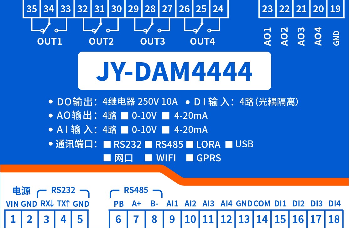 工業級繼電器控制板 4路繼電器控制(DO)4路光耦輸入(DI)4路模擬量輸入(AI)4路模擬量輸出(AO),4路繼電器控制輸出;4路光耦輸入(5-24V) ;4路12位分辨率模擬量電壓輸入;4路12位分辨率模擬量隔離輸出;支持RS232或隔離RS485通訊接...