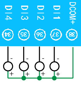 下圖中的電源部分為傳感器供電,AI1-AI8接傳感器信號正,ACOM-為傳感器信號負,ACOM+不用。