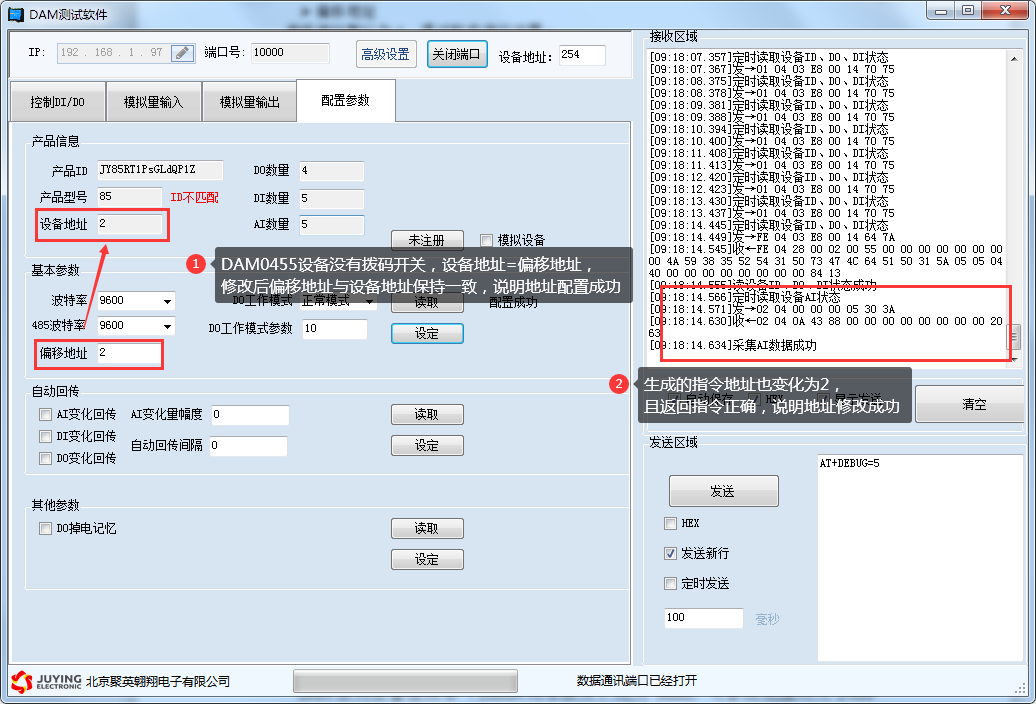詳細使用說明參考:JYDAM調試軟件使用說明