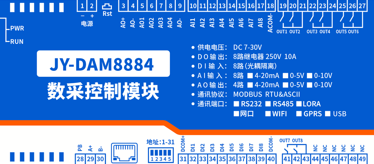 功能說明:8DO+8DI+8AI+8AO