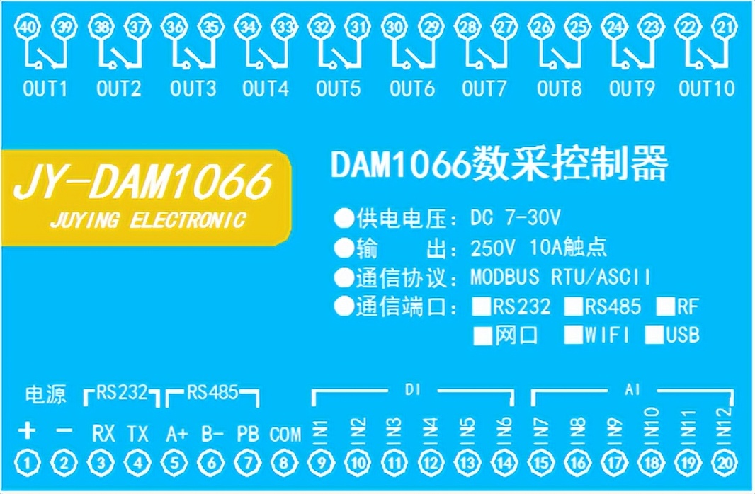 型號 | modbus | RS232 | RS485 | USB | WiFi | 繼電器 | 光耦 | 模擬量 |