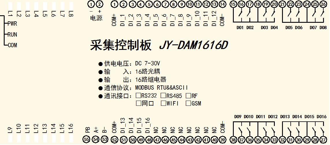 功能說明:16DO+16DAI