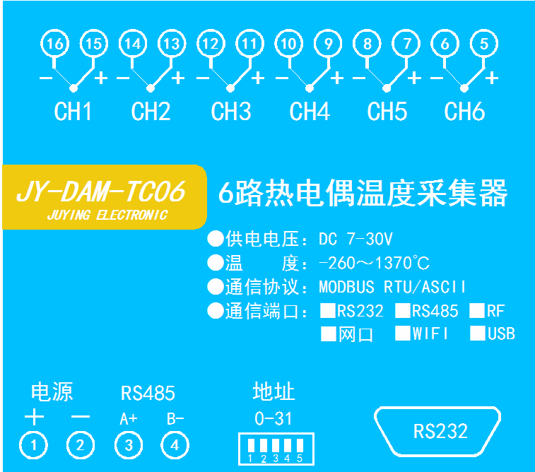 型號 | modbus | GPRS | WIFI | RJ45 | K型熱電偶 |