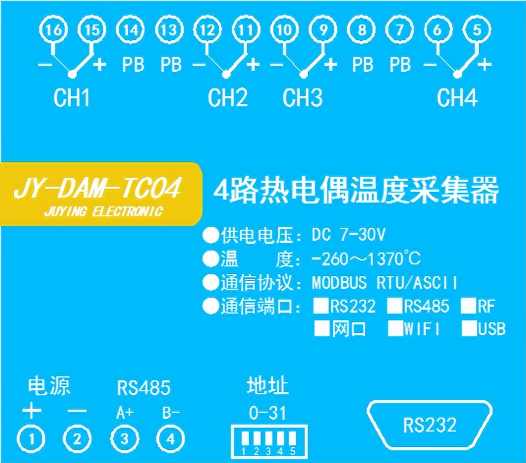 型號 | modbus | RS232 | RS485 | WIFI | 以太網口 | 熱電偶 |