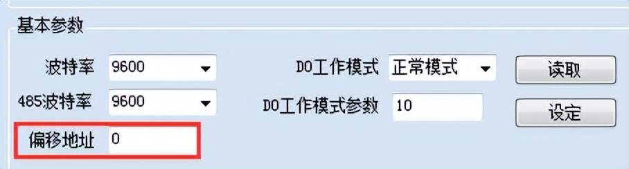 ②、設備通過IP地址來區分設備,設備地址默認為254,若需修改設備地址,使用【JYDAM調試軟件】在配置參數里面修改偏移地址即可,如下圖所示:
